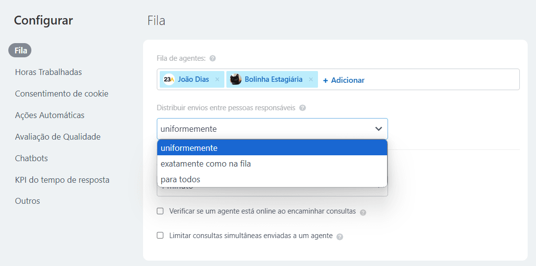 - Definir limites de atendimentos simultâneos, garantindo que os agentes possam oferecer um atendimento de qualidade.