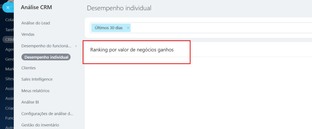 Uma funcionalidade central do relatório é o ranking, que classifica os colaboradores pelo valor total de negócios fechados.
