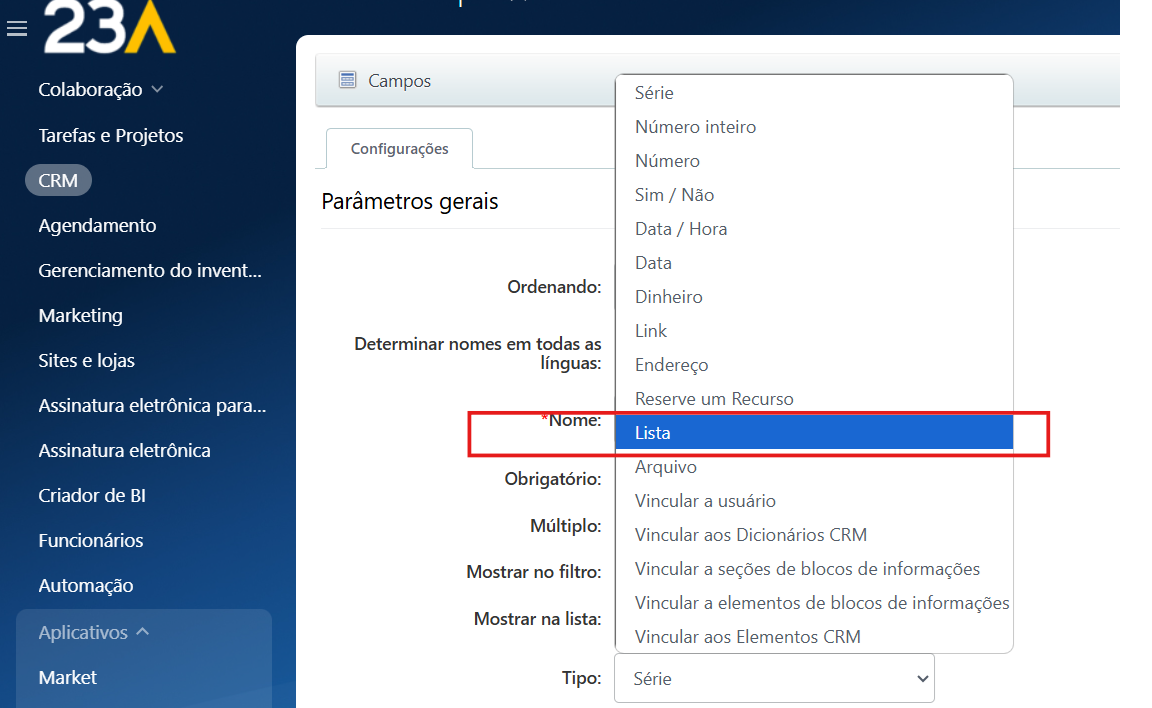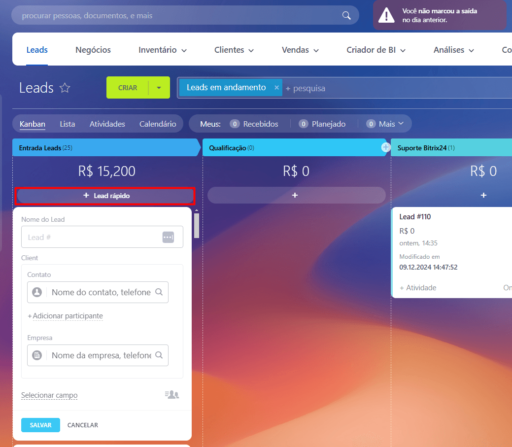 1 – Acesse o CRM no Bitrix24: faça login e vá até o módulo de CRM.