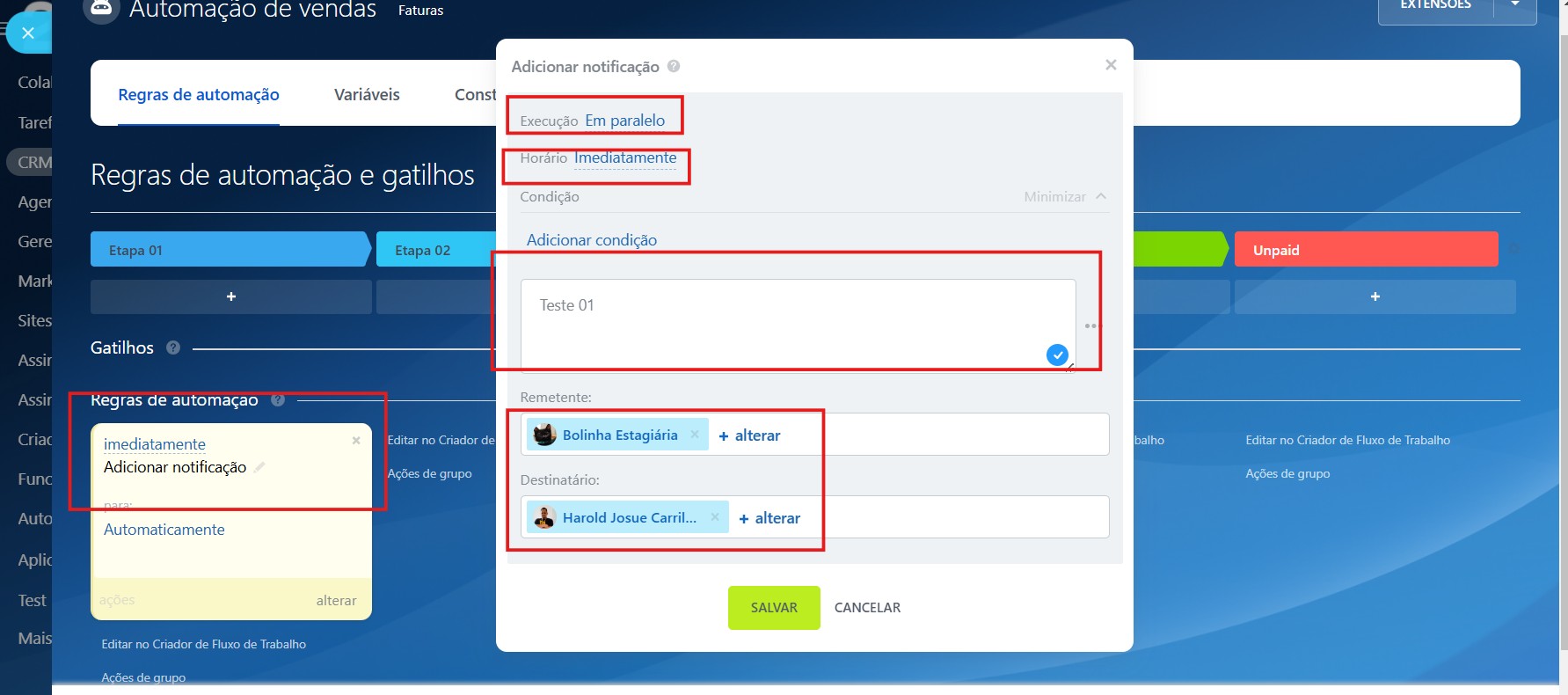 - Personalize suas regras: adapte cada automação à realidade do seu processo comercial. Quanto mais alinhadas às suas etapas e aos seus SLAs, maiores serão os resultados.