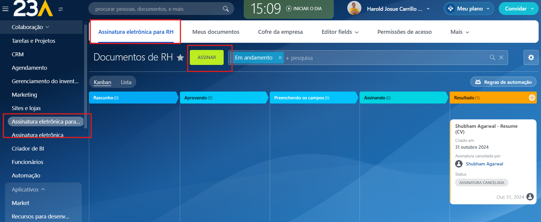 No Bitrix24, a novidade do bot de RH simplifica a assinatura eletrônica. Isso permite enviar documentos atualizados e validados de forma digital, sem depender de papel ou burocracia.