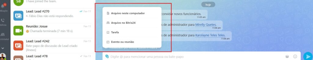 3. Utilize o chat para compartilhar arquivos, mensagens e atualizações.