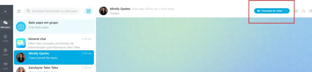 Experimente as funcionalidades de chat e videochamada e veja como a interação do seu time pode evoluir para um novo nível!