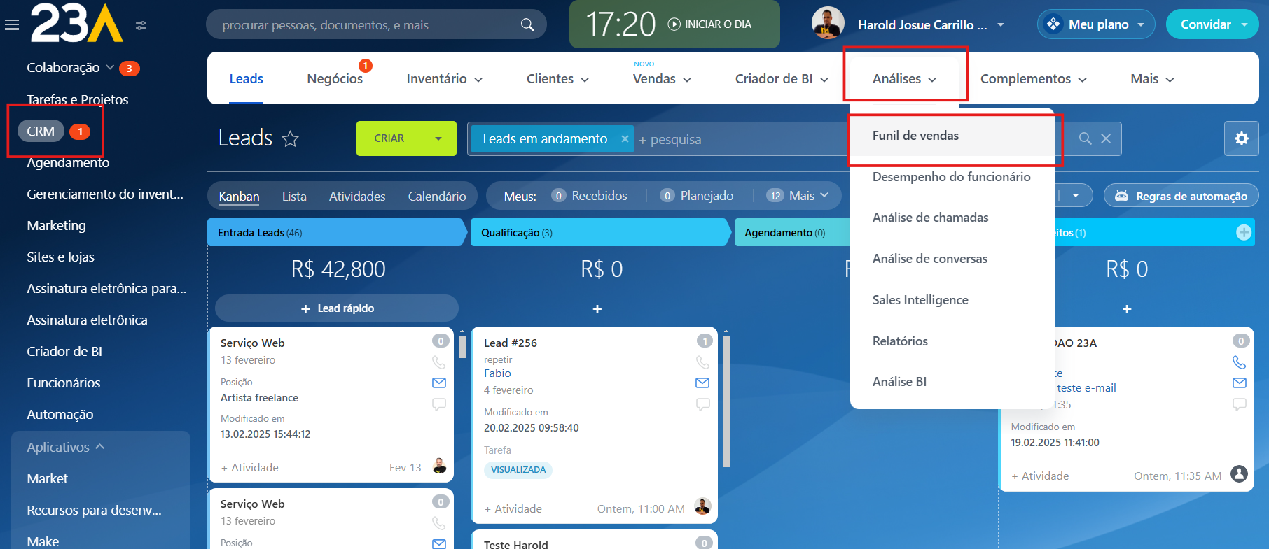2 – Dentro do CRM, selecione “Análises“.