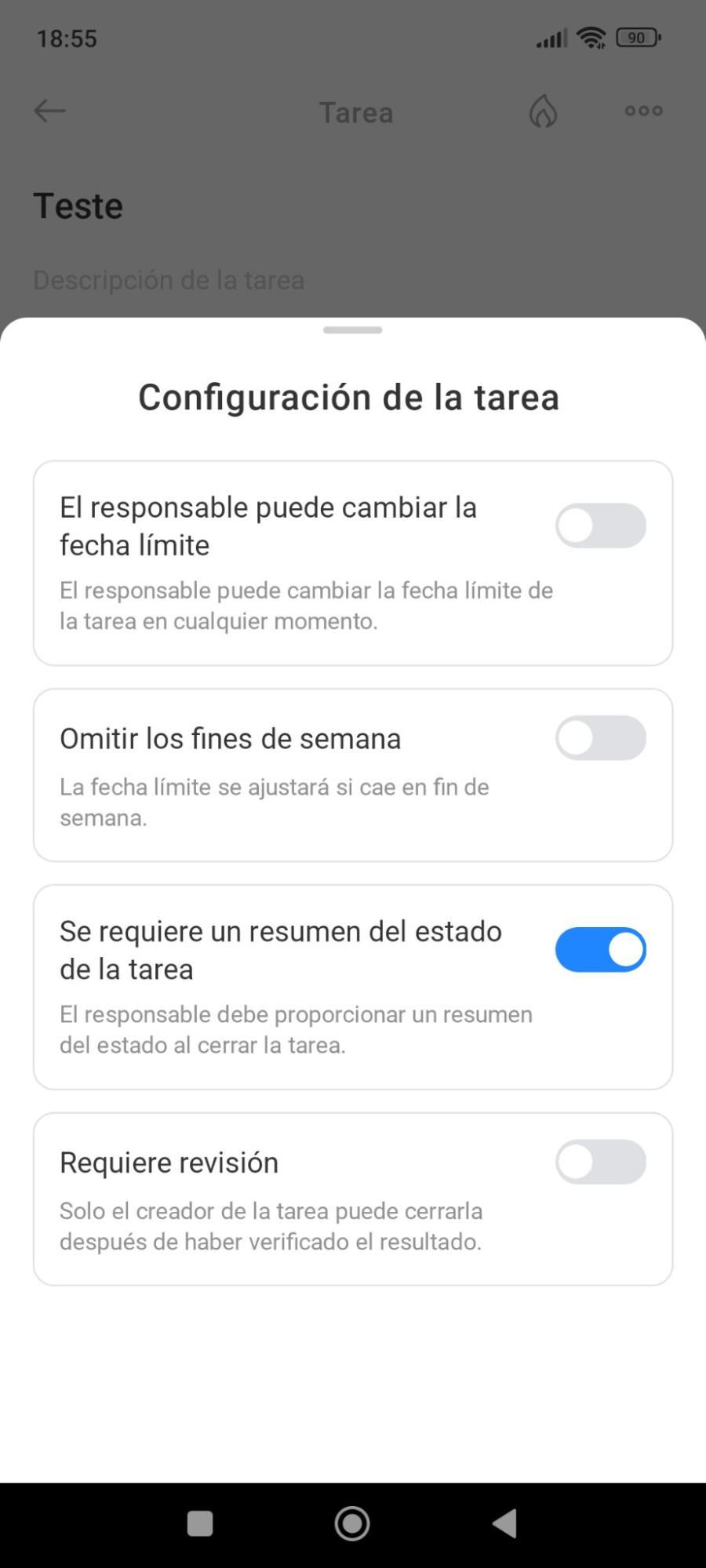 - Ao criar ou editar uma tarefa, localize a seção de configurações adicionais.