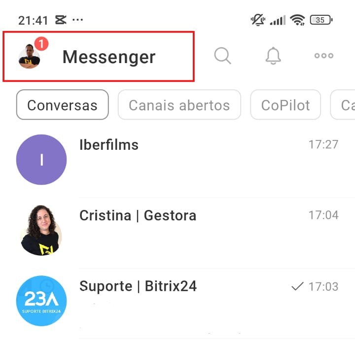 Toque na sua foto de perfil (canto superior esquerdo) para acessar as opções rápidas: