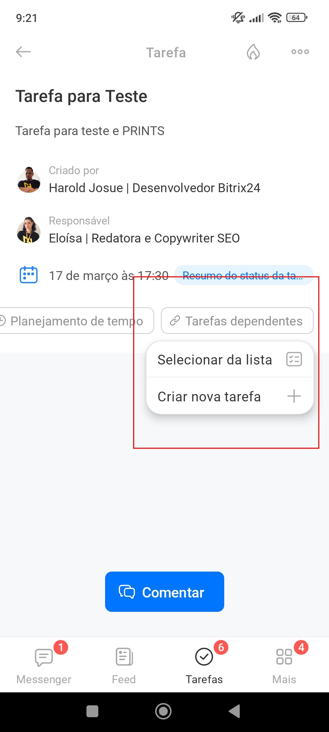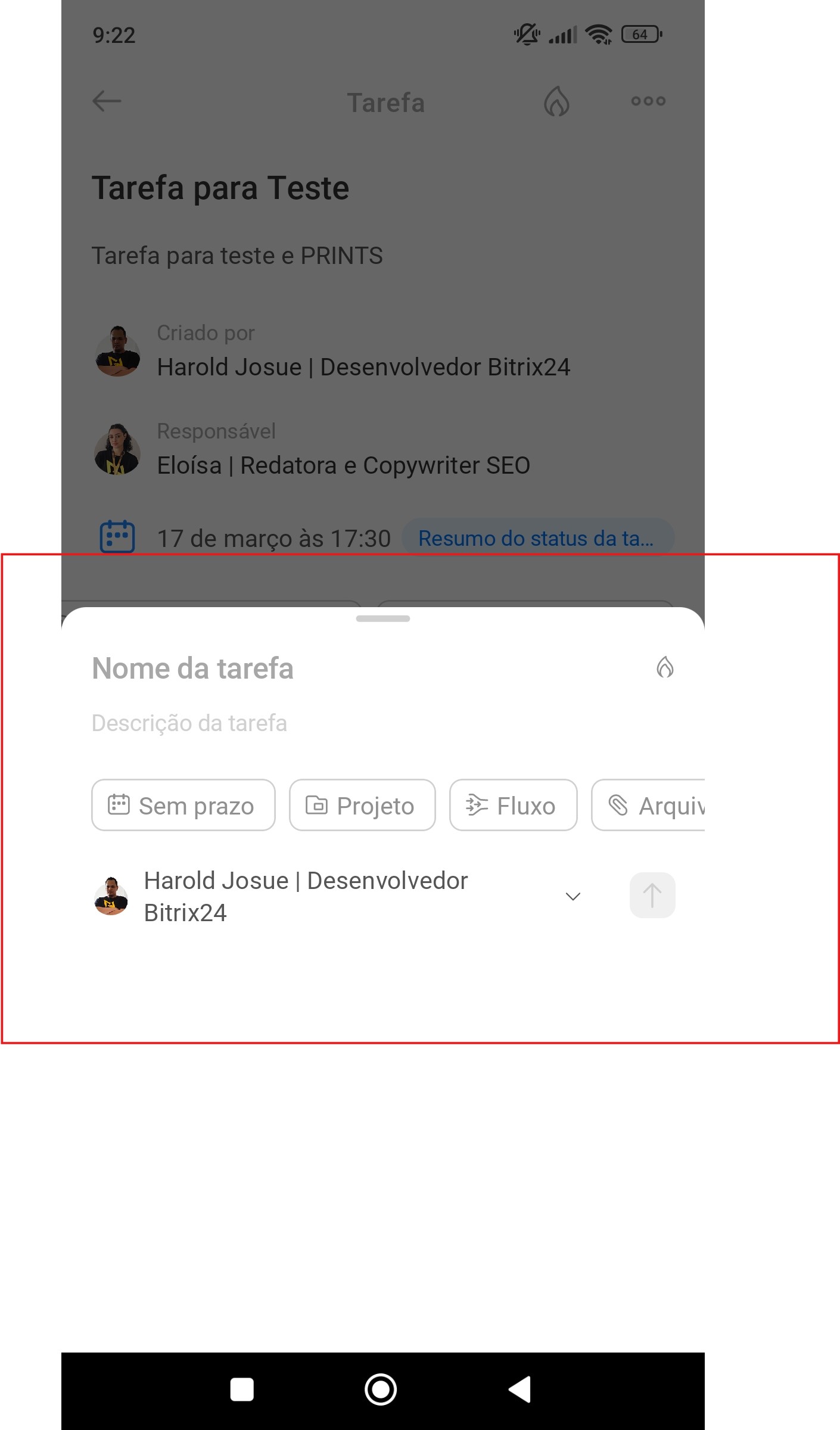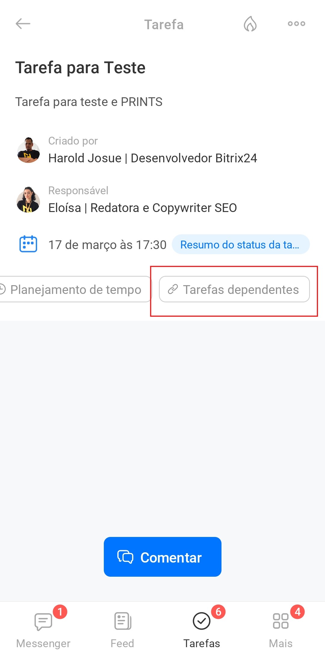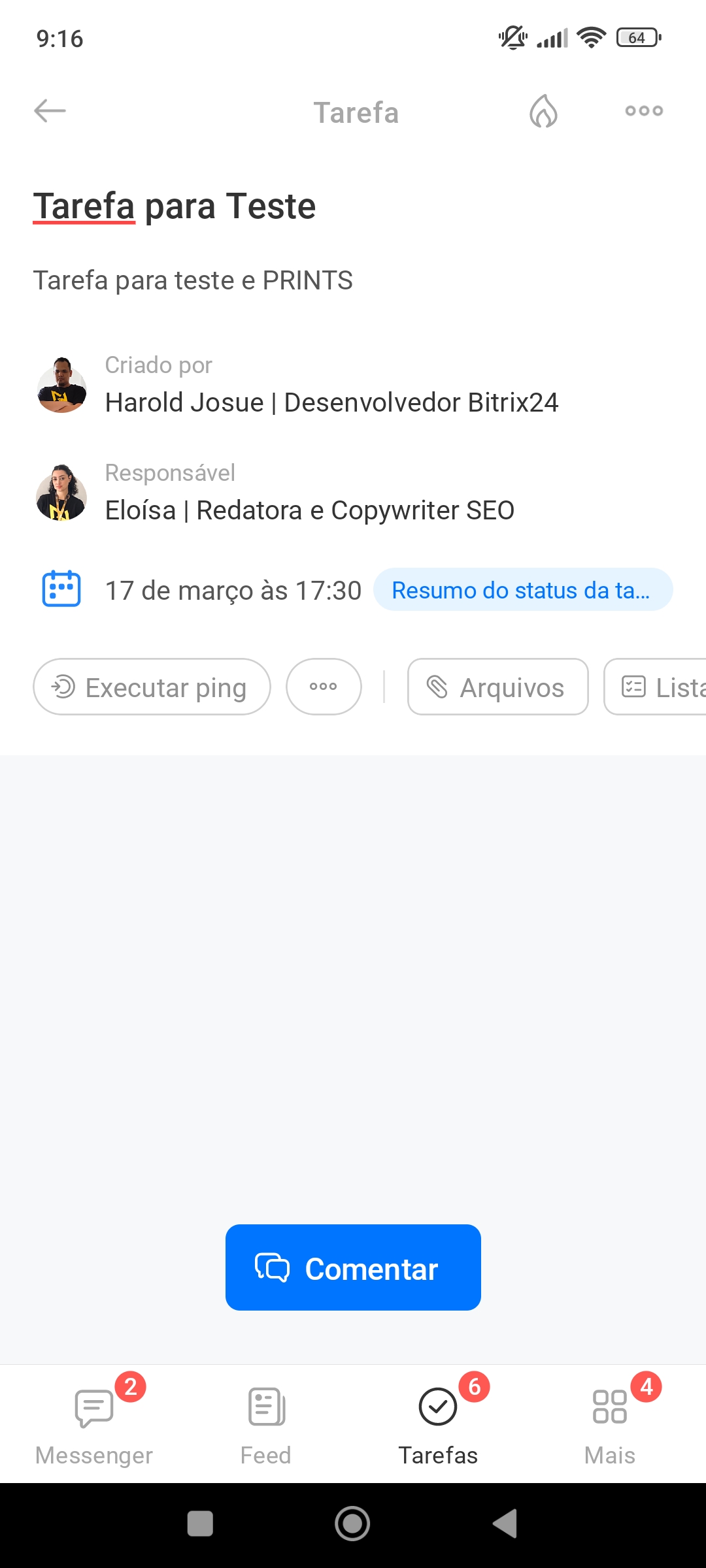 1.- Abra uma tarefa no aplicativo móvel do Bitrix24.