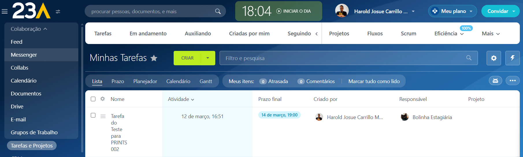 1.- Acesse o Gráfico de Gantt dentro da seção de tarefas.