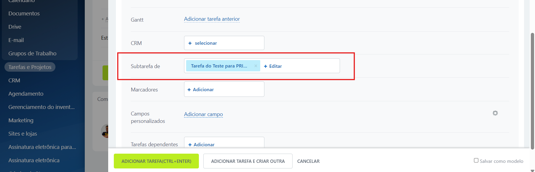 3.- Essa opção transforma a nova tarefa em uma subtarefa da primeira, mantendo a hierarquia organizada.