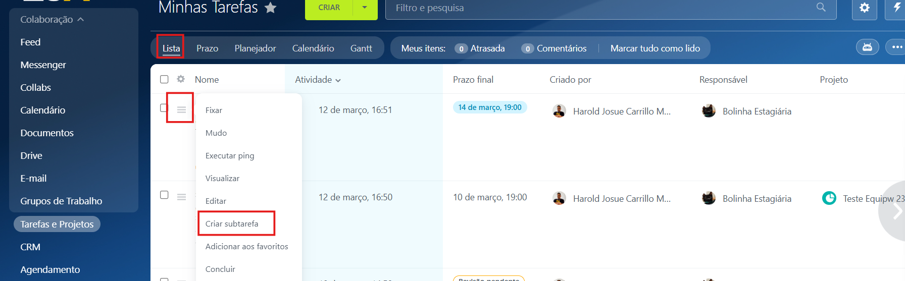 A versão web do Bitrix24 oferece várias maneiras de adicionar subtarefas, garantindo flexibilidade para diferentes estilos de trabalho.
