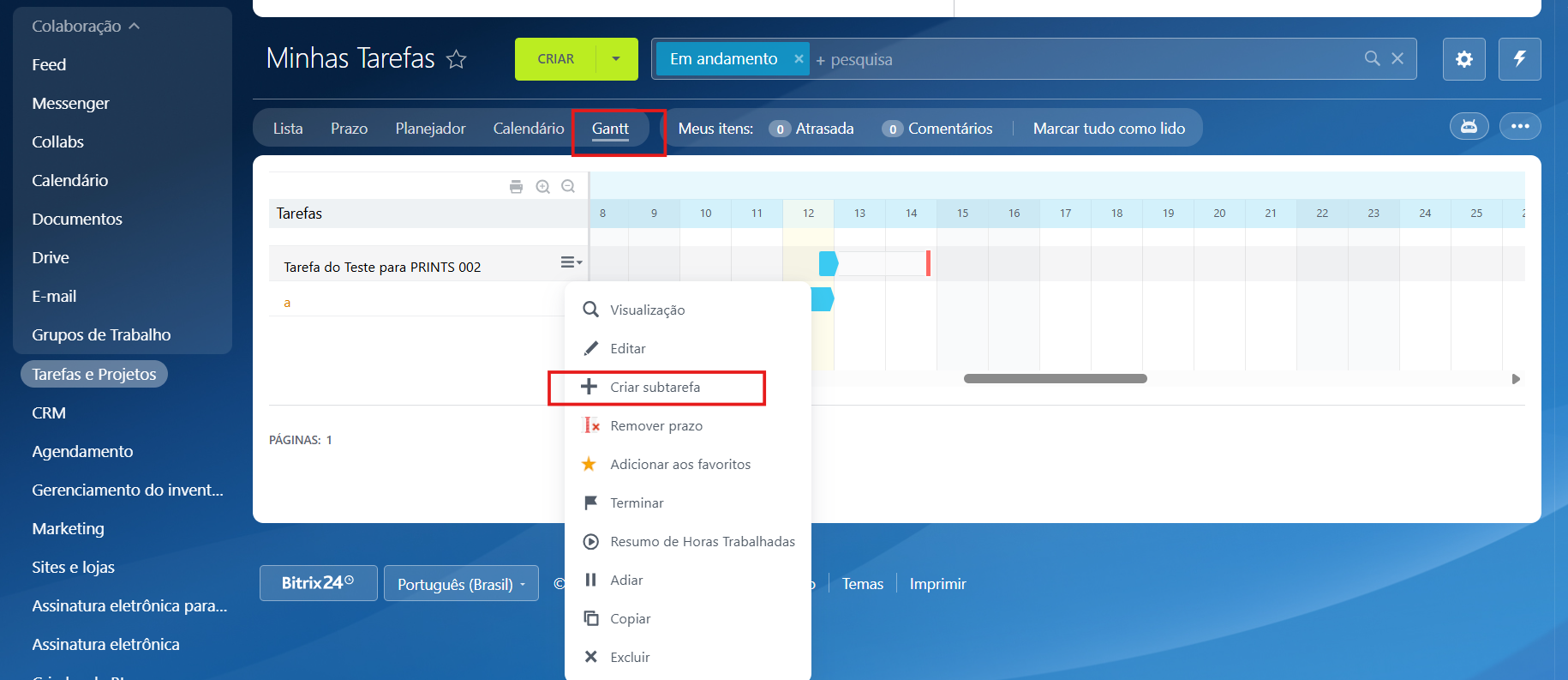 Para manter a produtividade e organização dentro de um projeto, é fundamental dividir grandes tarefas em etapas menores e mais fáceis de gerenciar. No Bitrix24, isso é possível por meio das subtarefas, as quais são tarefas vinculadas a uma tarefa principal (tarefa mãe).