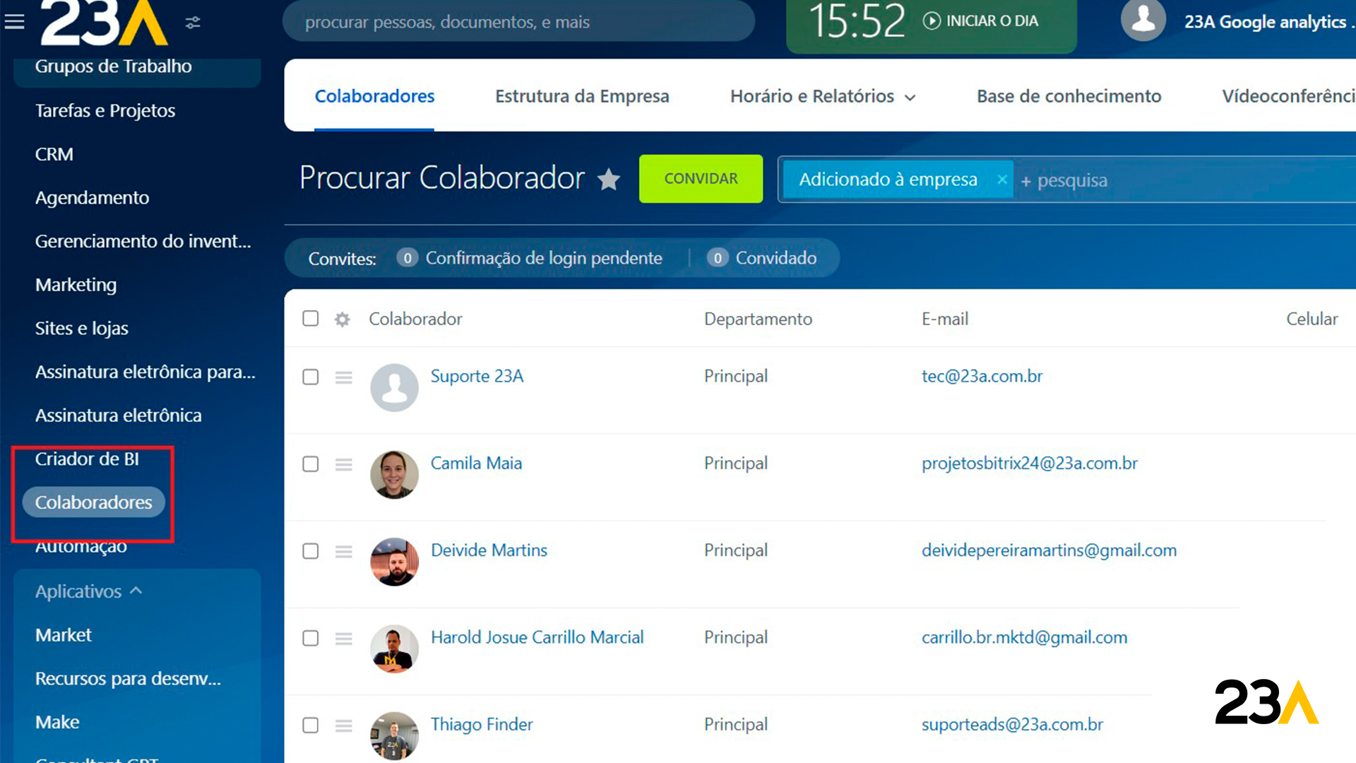 - Clique na opção de “Colaboradores” no canto esquerdo da tela.