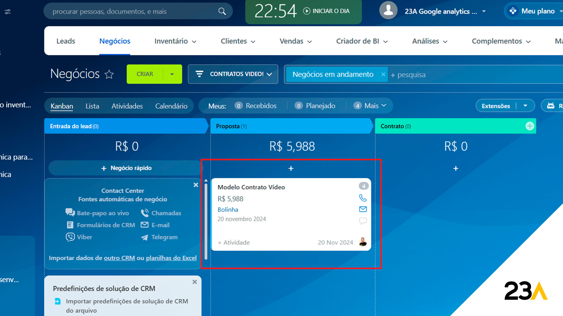 Quer ver isso funcionando na prática? Fale com a equipe da 23A e veja como aplicar o Kanban no seu CRM com o Bitrix24.