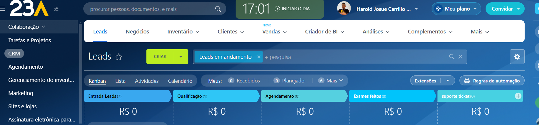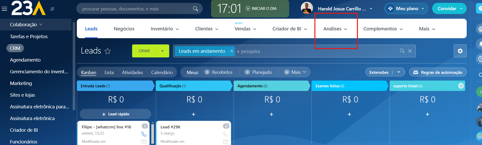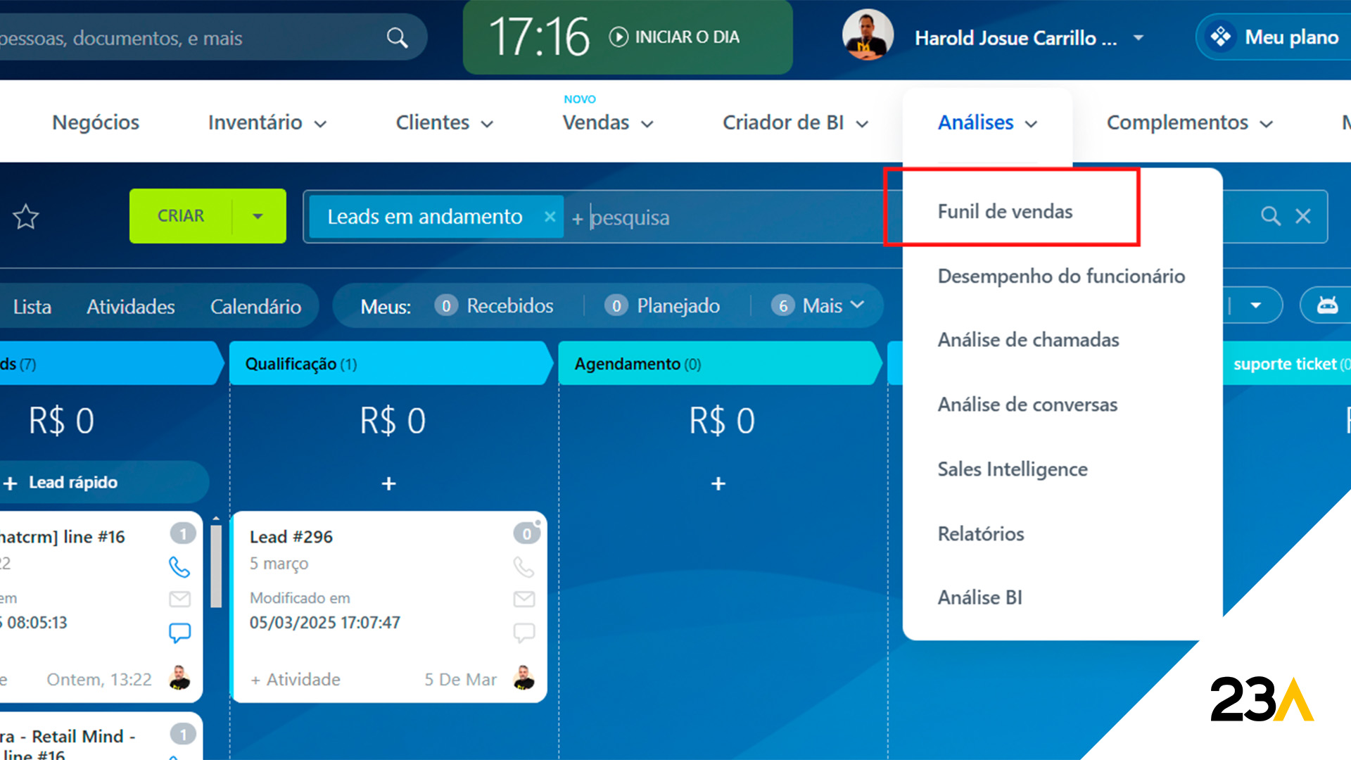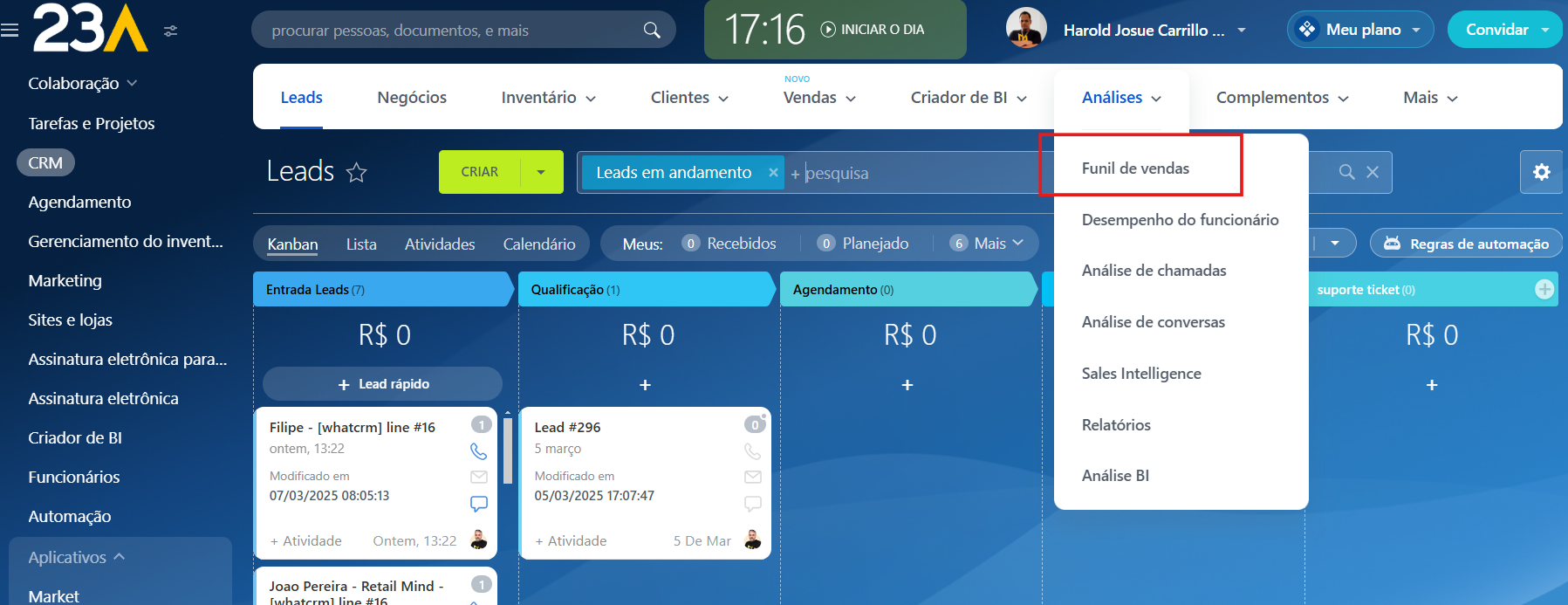 Esses dados, atualizados em tempo real, permitem decisões baseadas em fatos, conforme o comportamento do lead no funil.