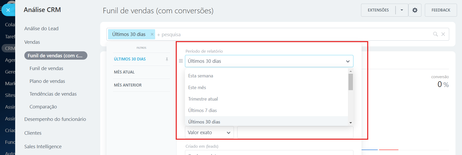 O Bitrix24 oferece relatórios pré-configurados para facilitar a análise do funil de vendas. Para visualizar o funil padrão: