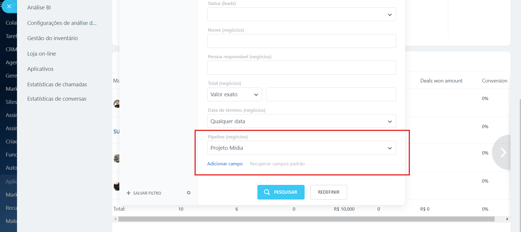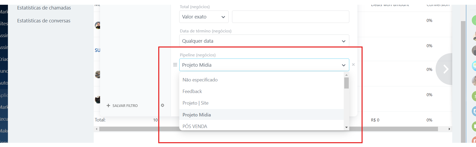 2 – Selecione o pipeline correspondente ao seu processo de vendas.