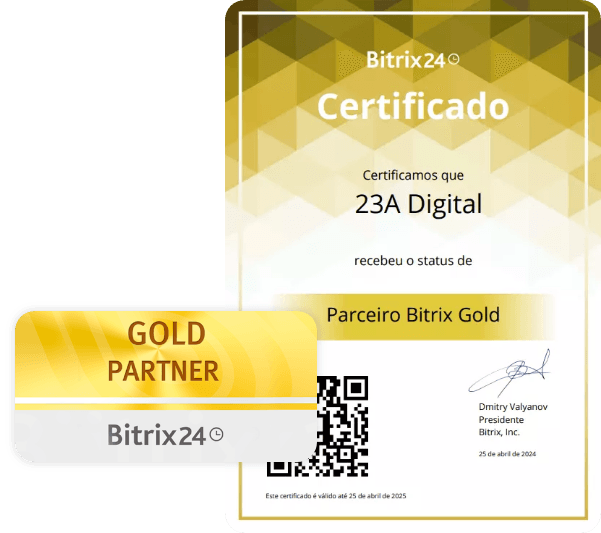 Somos parceiros Gold do Bitrix24, um reconhecimento à nossa excelência em atendimento e à qualidade certificada de nosso suporte.